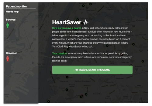 General Description Half a million New Yorkers have heart disease. How many of them have good access to emergency care in the event of a heart attack? HeartSaver challenges players to save as many lives as possible by routing victims to the best/nearest emergency room.